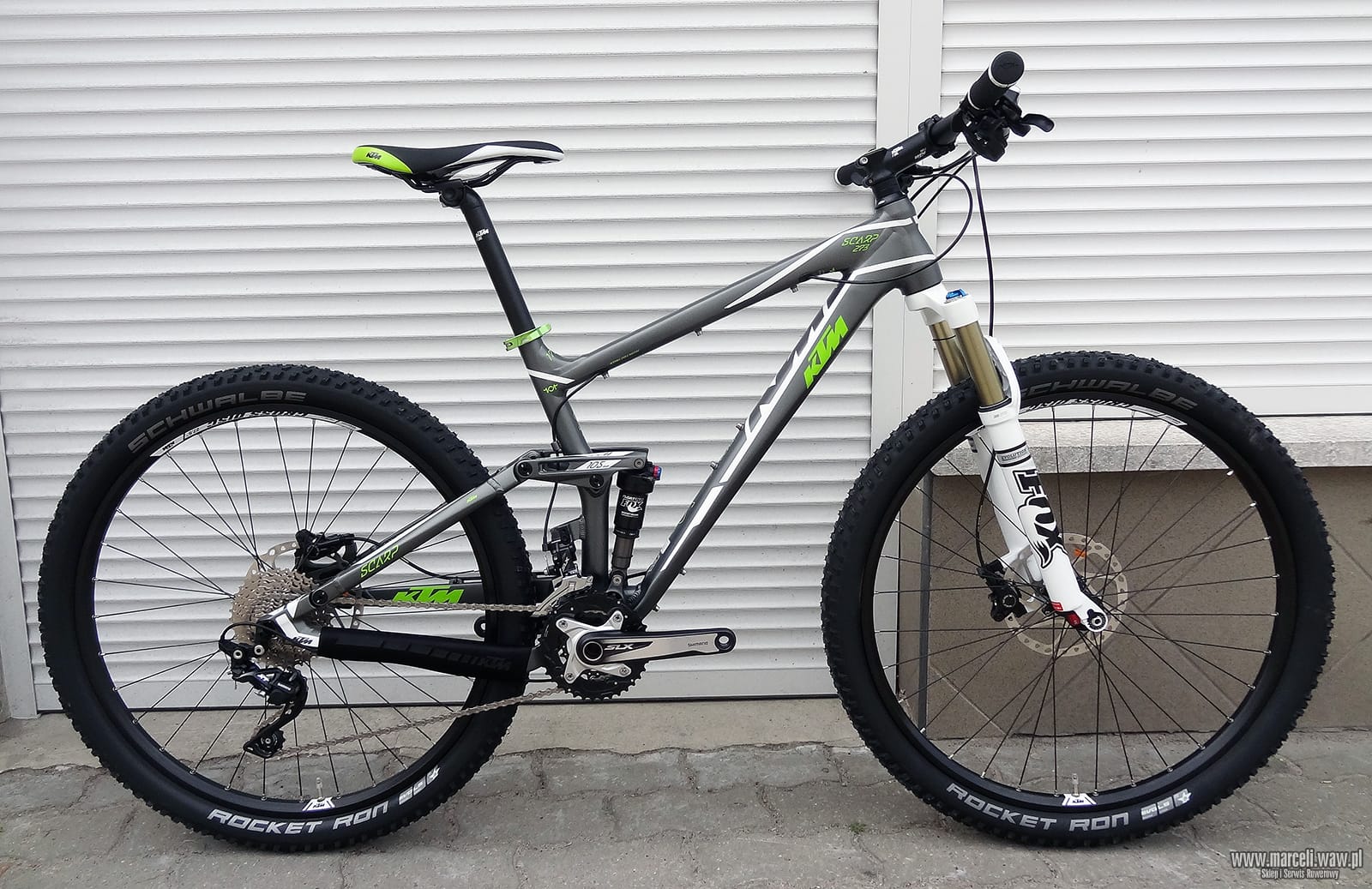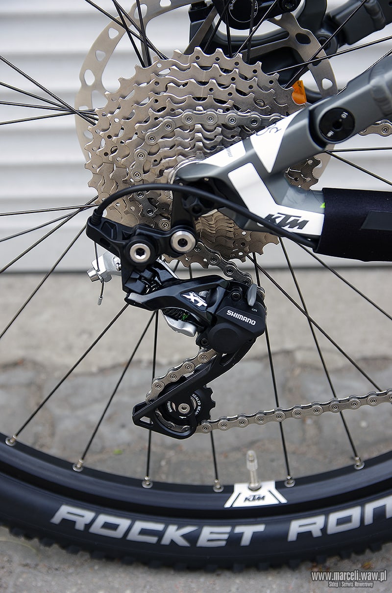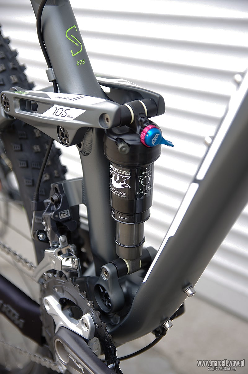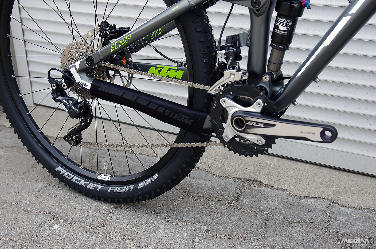Rower‬ KTM Scarp 273. Amortyzacja roweru oparta na komponentach firmy FOX, osprzęt z grupy Shimano XT/SLX/Deore.